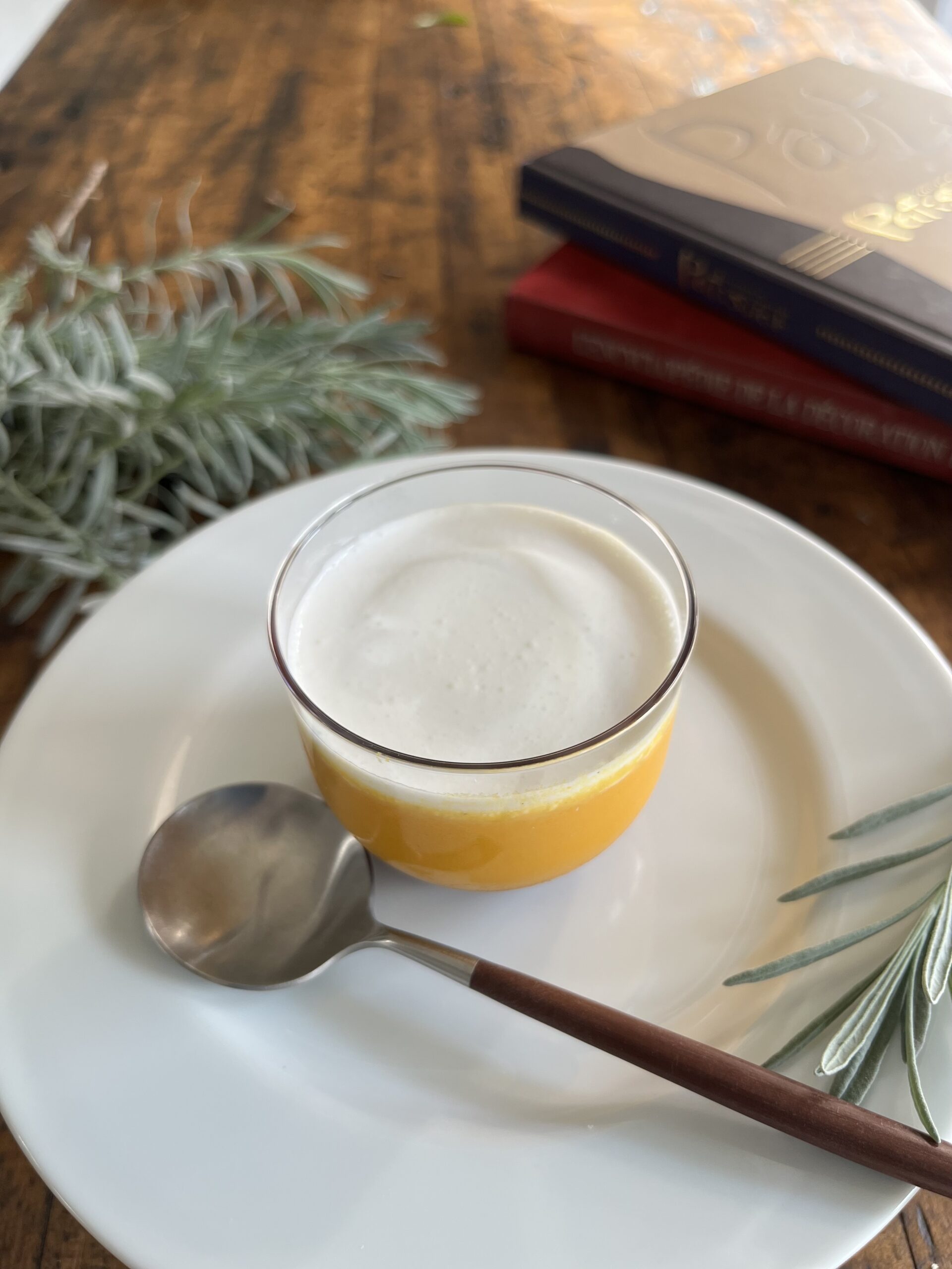 なめらかで濃厚なかぼちゃプリンと生クリーム、カラメルを合わせました